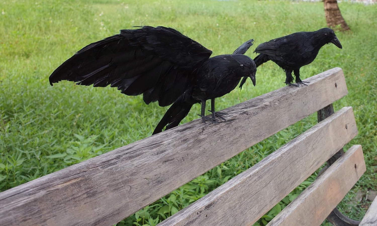 2-Pack Realistic Crows Lifesize Extra Large Handmade Black Feathered Crow for Halloween Decorations Birds, L (13 inch+12 inch)