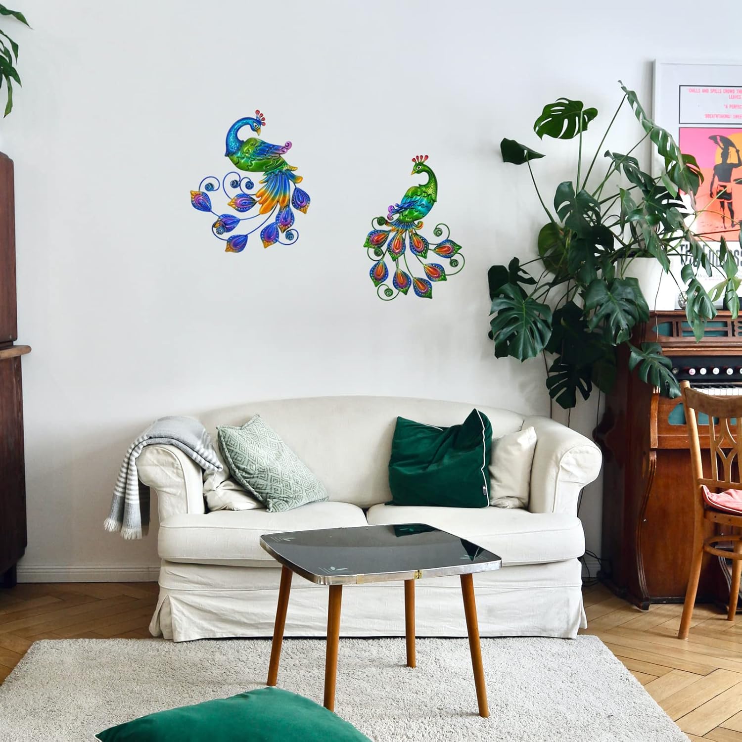 - [Peacock wall decor] 2 metal peacock outdoor decor, beautiful shape, gorgeous colors and exquisite craftsmanship, to create a natural and happy atmosphere for the decoration space.