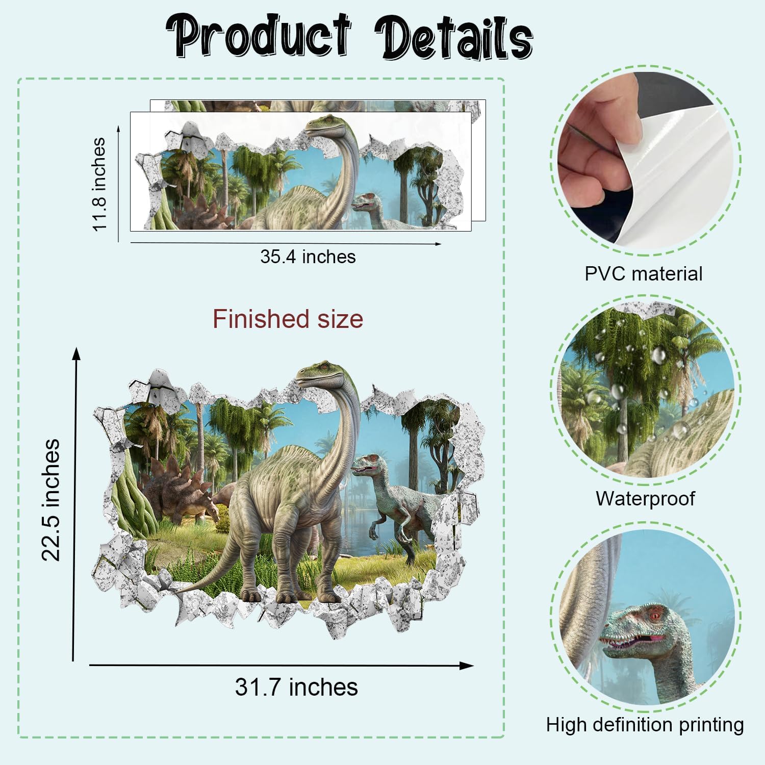 - High Quality: About the 3D dinosaur wall sticker are made of vinyl, it can be self-adhesive or removable. You just need to peel and stick on a smooth surface (window, walls, door, tiles, mirror, glass, etc)